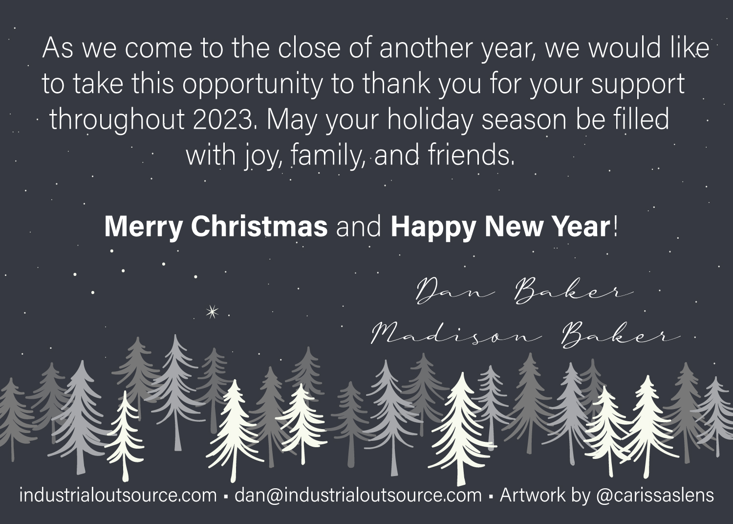 IOS Christmas Card 2023 The brush strokes in this card vary a bit from my usual style, as the design was made to match the style of the previous company designer. See if you can spot the Little Dipper 😉 Share this: Click to share on X (Opens in new window) X Click to share on Facebook (Opens in new window) Facebook Click to share on Pinterest (Opens in new window) Pinterest Like Loading... Related